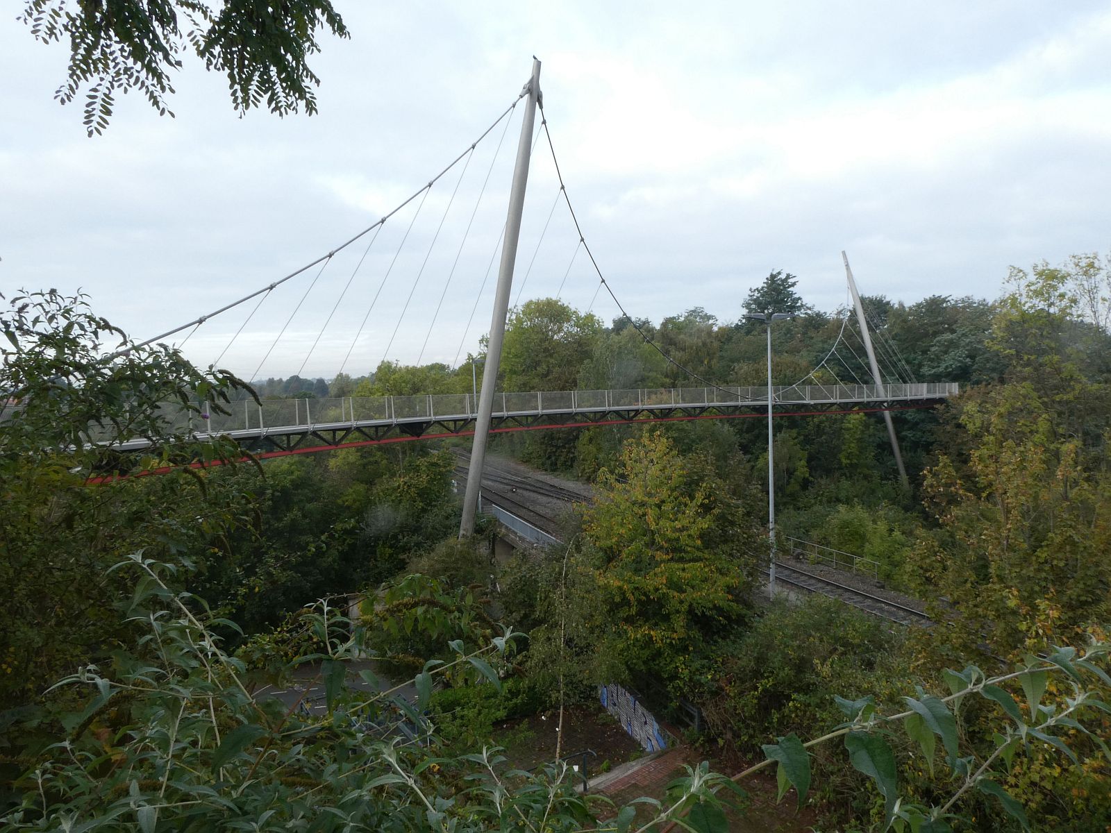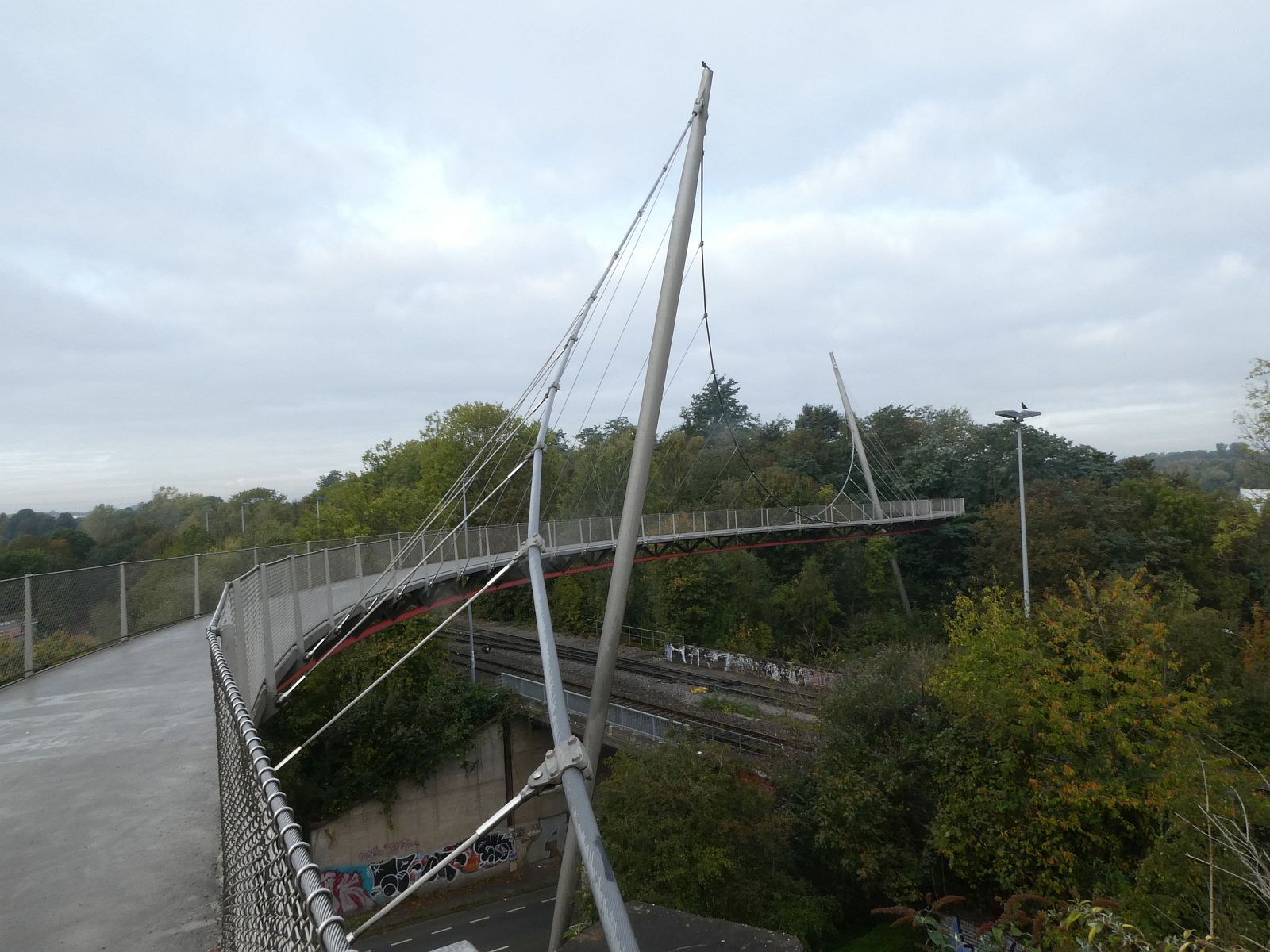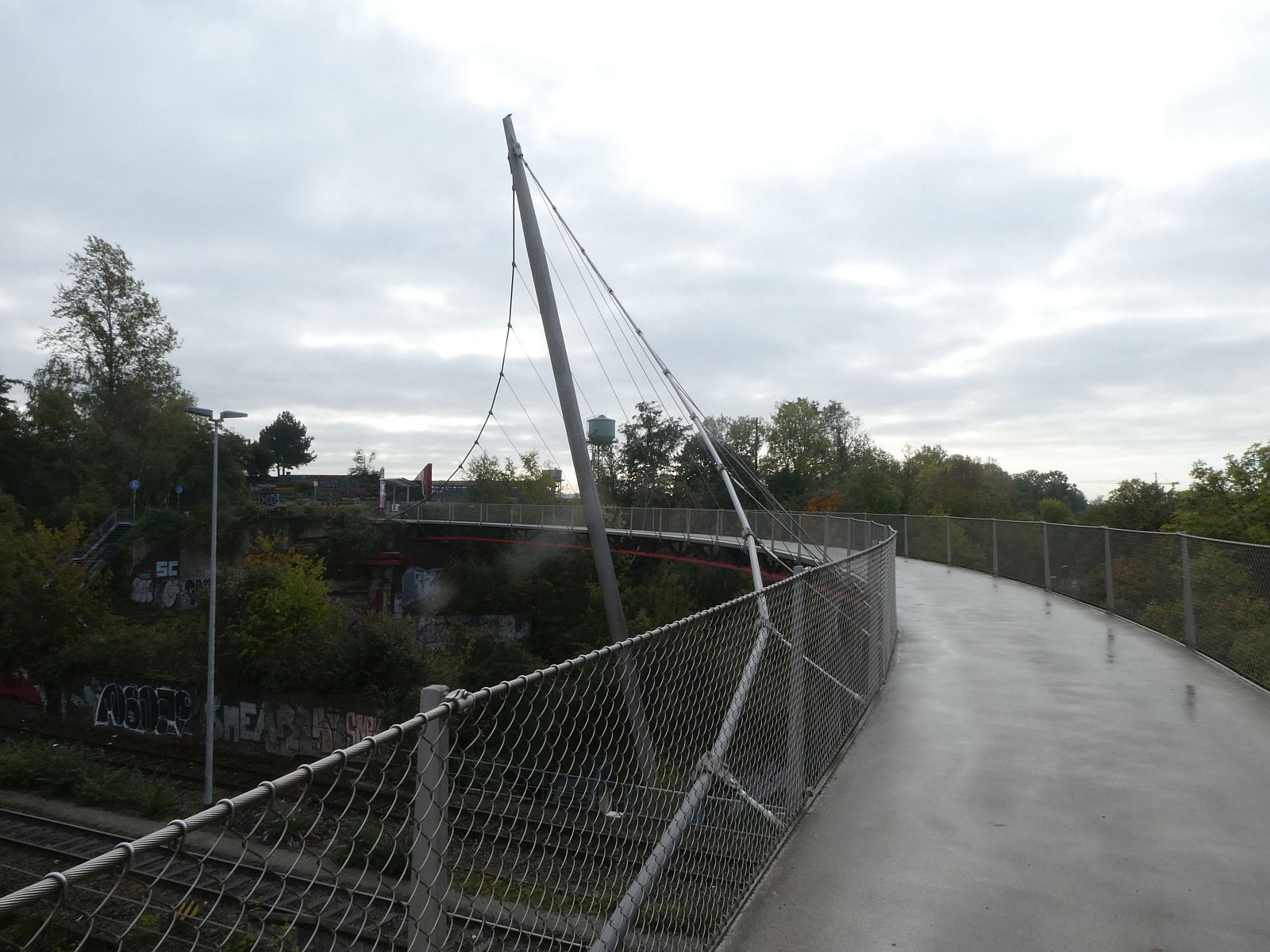 Die Erzbahnschwinge ist eine zweimastige Hängebrücke mit einer S-förmig geschwungenen