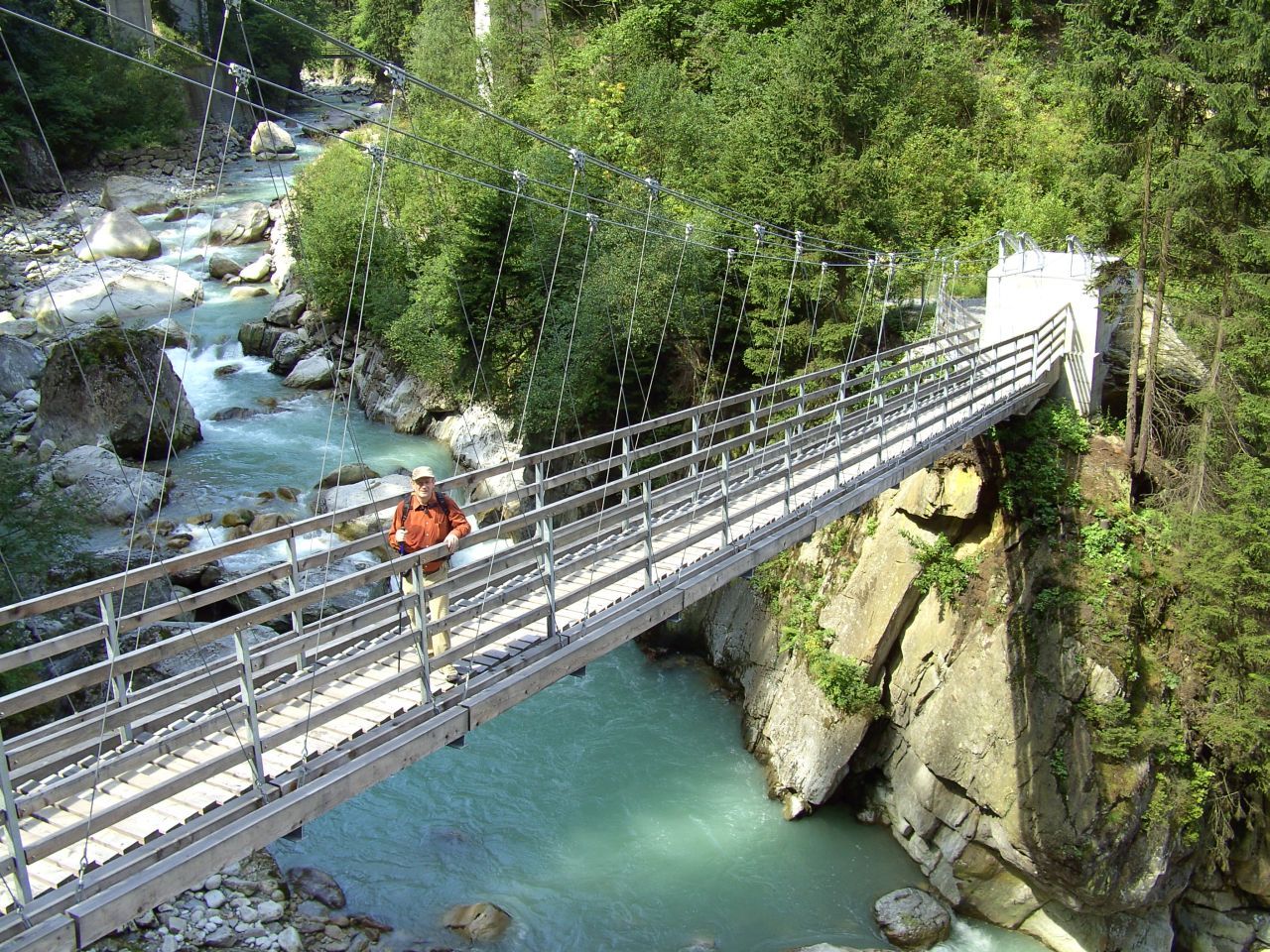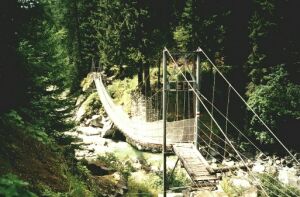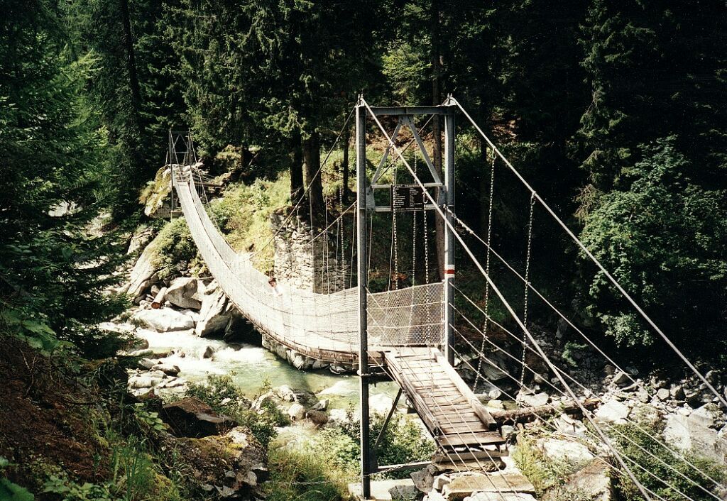 Punt Traversa, Rofla-Schlucht, 2001Oberhalb der oberen Autobahnbrücke in der Rofla-Schlucht wurde ein Hängesteg