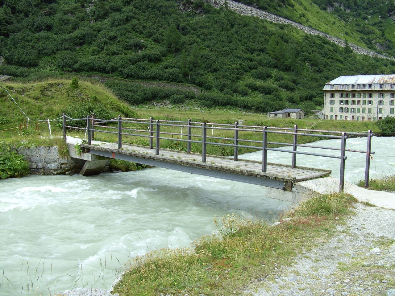 Die erste RhonebrückeBei Gletsch führt der erste Steg über die junge Rhone. |