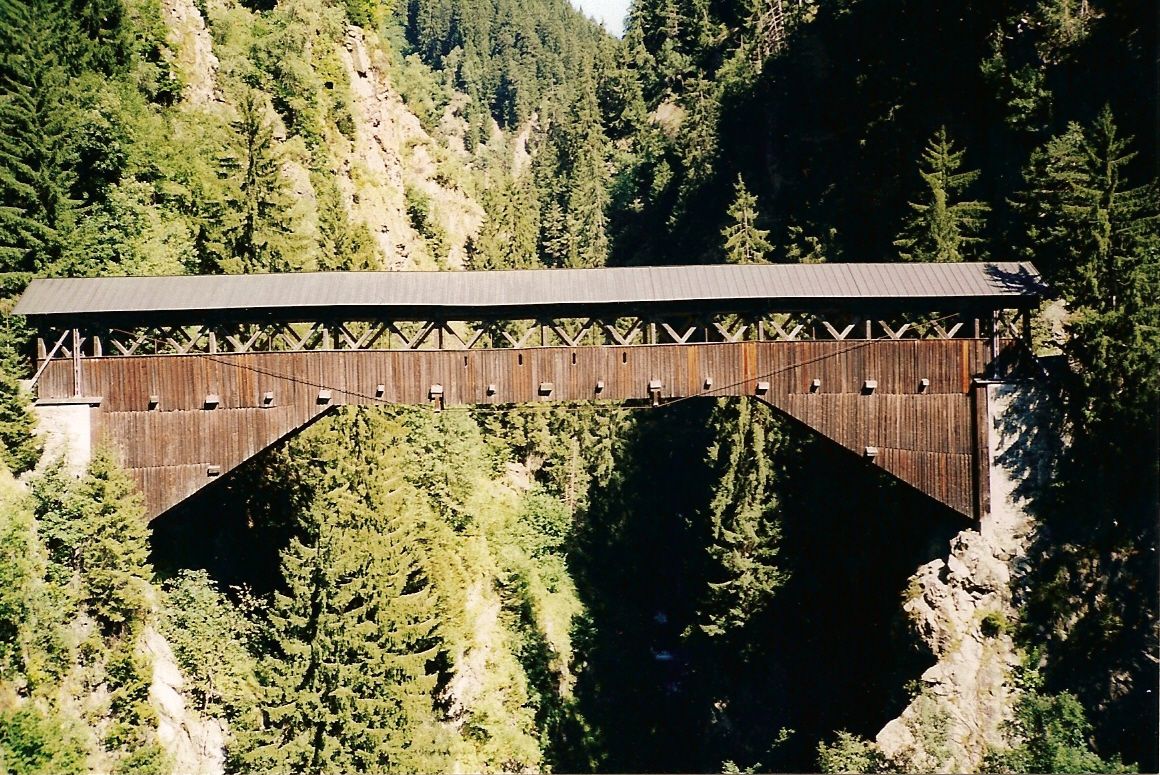 Alte Russeintobelbrücke bei SomvitgÜber das Russeintobel, einer Seitenschlucht zum Vorderrheintal, führen 3