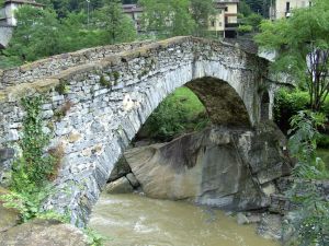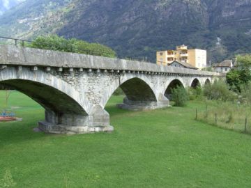 Alte Brennobrücke, BiascaDie für den Autoverkehr gesperrte alte Brennobrücke hat mehrere Segmentbögen. |