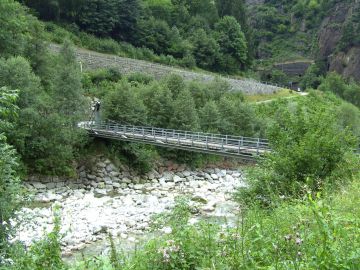 Reusssteg an der FellibachmündungFür den 2007 erstellten Gotthardbahn-Wanderweg wurde ein Hängesteg über die Reuss erbaut. |