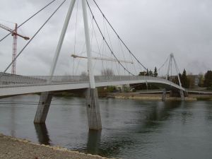 Aaresteg Solothurn, 2007Der neue Hängesteg führt westlich von Solothurn über die Aare. |