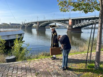 Die 1885 erbaute Theodor-Heuss-Brücke in Mainz gibt die Kulisse für den englischen Seefahrer