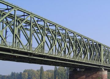 SKR- (Schaper-Krupp-Reichsbahn) Gerät Die Bezeichnung verweist auf den Brückenkonstrukteur Schaper, die Herstellerfirma Krupp und den damaligen Hauptabnehmer. Mit diesem seit 1940 hergestelltem Gerät, das bei größeren Spannweiten ein K-Fachwerk verwendet, wurden die meisten Behelfsbrücken und Dauerbehelfsbrücken während des zweiten Weltkriegs und nach dessen Ende für die Wiederaufnahme des Bahnbetriebs erstellt. Südbrücke Mainz |