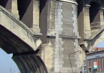 beim Hafen von Renory westlich von Lüttich: Kämpfergelenke an den Pfeilern |