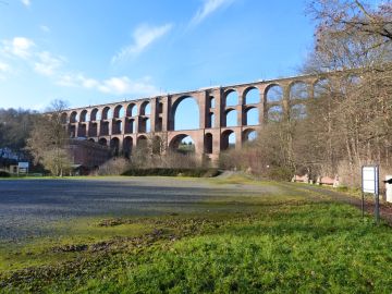 einer oder zwei Bogenreihen. Der 1851 erbaute Göltzschtal-Viadukt besteht aus 75 Bogen, die auf 4 Reihen verteilt sind. Er ist die größte Brücke aus Ziegelmauerwerk. Göltzschtalviadukt, Foto: Peter Knopf, Leverkusen |