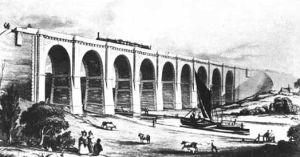 Für die Eisenbahn von Liverpool nach Manchester wurden 1830 die ersten Eisenbahnviadukte errichtet. Der Viadukt bei Newton le Willows hat 4 Bogen, der 305 m lange Sankey-Viadukt hat neun Bogen von bis zu 21 m Höhe. Sankey-Viadukt |