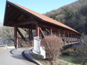 Bei heutigen Holzbrücken macht sich ein Dach ebenfalls gut. Neckarbrücke Horb-Ihlingen |