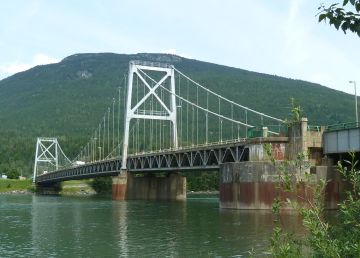 doppelstöckige Hängebrücke Europas mit kombiniertem Eisenbahn- und Straßenverkehr. Die ebenfalls 1966 fertiggestellte Severn Bridge war die erste Hängebrücke der Welt mit einer Brückentafel aus einem geschlossenen Stahlkasten und schräg angeordneten Hängern. Die 1984 eröffnete Humber Bridge führte mit einer Spannweite von 1410 m den Weltrekord wieder nach Europa zurück. |