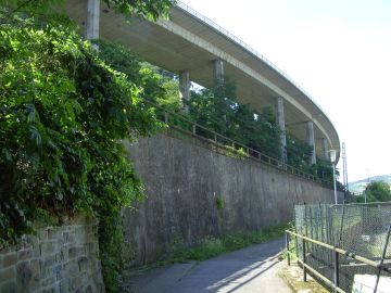 Eine Hangbrücke ist eine Brücke, die längs eines Tales am Hang entlang verläuft. |
