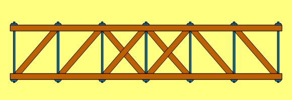 1840 baute Howe eine 402 m lange Eisenbahnbrücke über den Connecticut River bei Springfield mit sieben Öffnungen von je 54,9 m Stützweite. Die Träger waren 5,5 m hoch und hatten einen Abstand von 4,9 m. In gleicher Bauart errichtete Ghega, der diese Brückenart bei einer vorhergehenden Amerika-Reise eingehend studiert hatte, 1845 für die österreichische Staatsbahn eine Brücke über die Sulm mit zwei Öffnungen von je 47 m Weite und eine Brücke über die Drau mit drei Öffnungen von je 57 m Spannweite. Die 1851 fertiggestellte 588 m lange Brücke über die Msta der Eisenbahn St. Petersburg - Moskau hatte neun Öffnungen von fast 60 m Weite. |