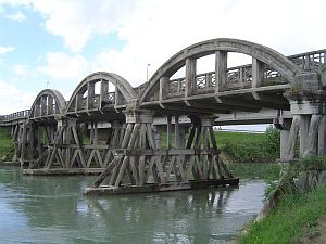 Hier gab man sich viel Mühe, eine ungewöhnliche Jochpfeilerkonstruktion aus Stahlbeton zu schaffen. Livenzabrücke in Norditalien |