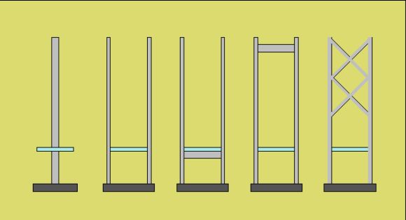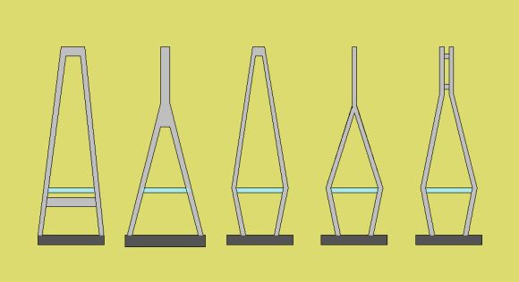 von links nach rechts: A-Pylon invertierter Y-Pylon Diamantform Diamantform mit Y-Stiel Diamantform mit aufgelöstem Y-Stiel | |