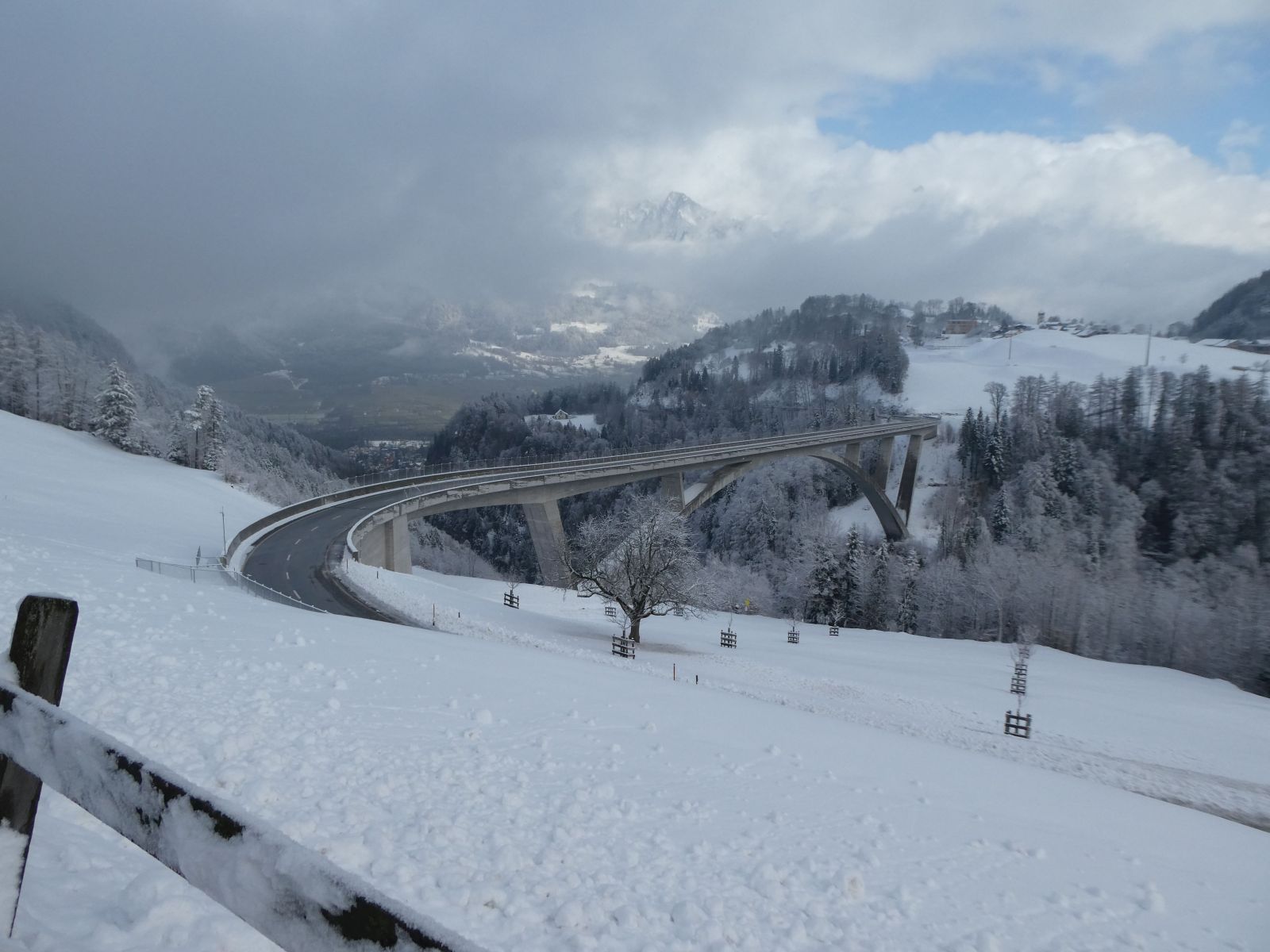 Oberhalb von Bad Ragaz führt die größte Bogenbrücke der Schweiz in rd. 200 m