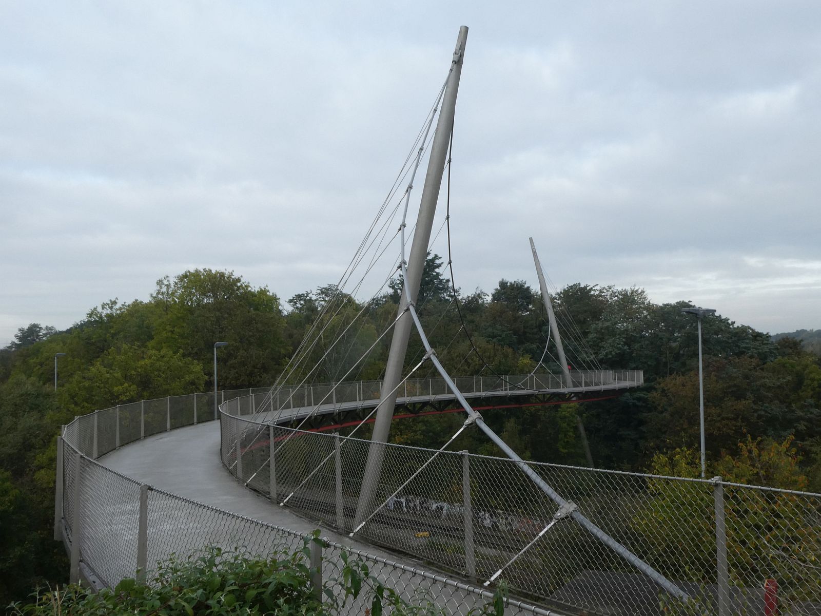 Die Erzbahnschwinge ist eine zweimastige Hängebrücke mit einer S-förmig geschwungenen