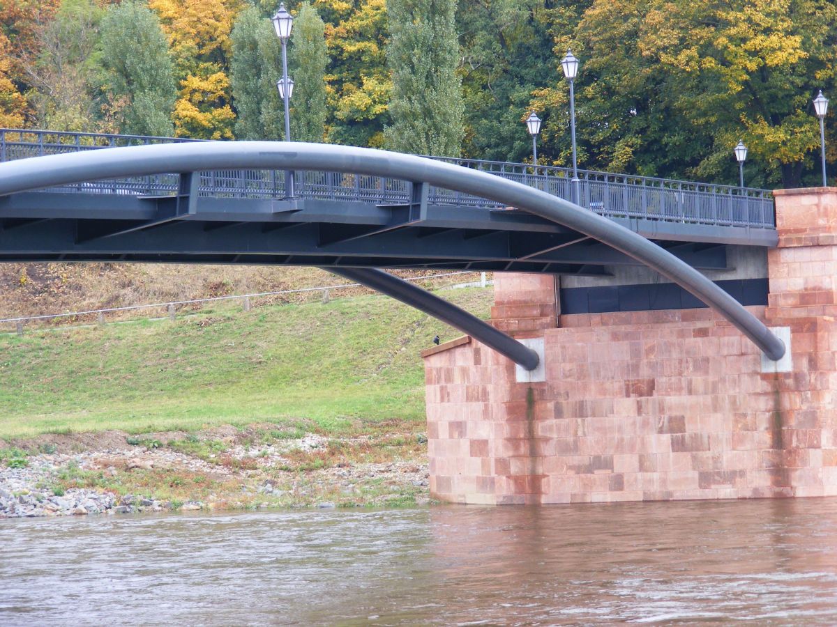 | Größeres Bild 1600 x 1200 Die nur noch Fußgängern und Radfahrern dienende Brücke konnte dem zweiten "Jahrhunderthochwasser"