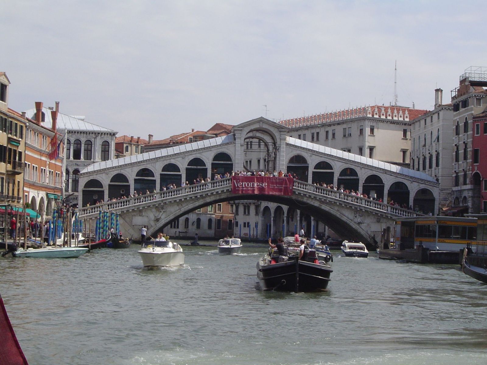 Die einzigartige Brücke überspannt den Canal Grande, die größte Wasserstraße Venedigs