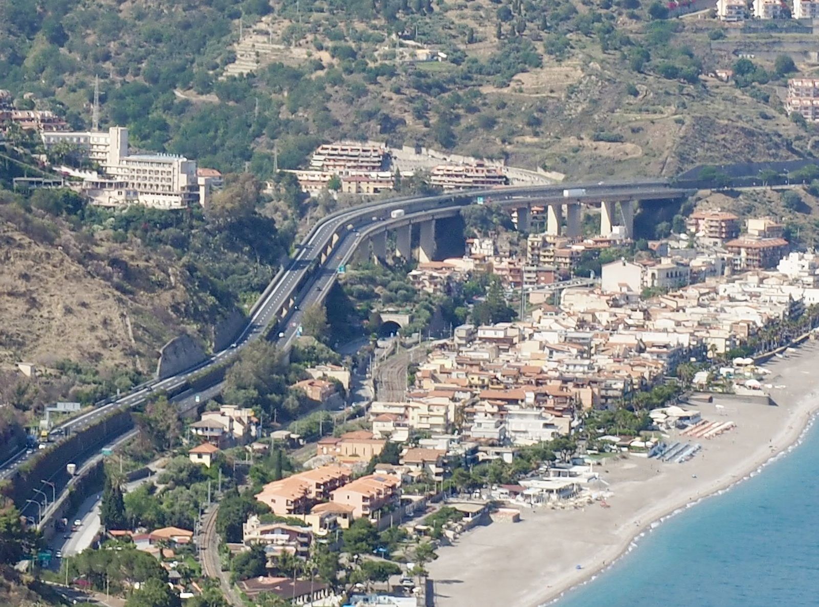 Letojanni ViaduktDer Viadukt der Küstenautobahn auf Sizilien quert bei Letojanni ein