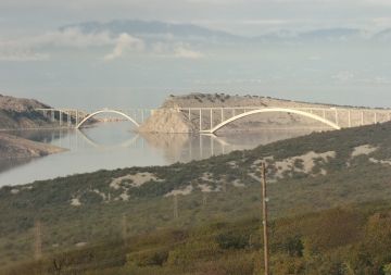 Krk-Brücke, 1976-1980Die Insel Krk ist mit einem Brückenzug aus zwei Bogenbrücken mit dem Festland verbunden.