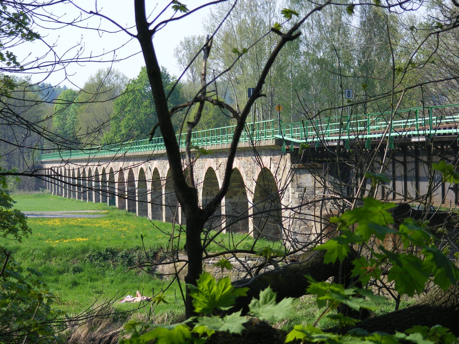 | Größeres Bild 1600 x 1200 Über der rechten Talaue wurde der Viadukt als Gewölbereihe mit 24 Segmentbögen von 6,2 m Höhe und 4,5 m Weite ausgebildet. |