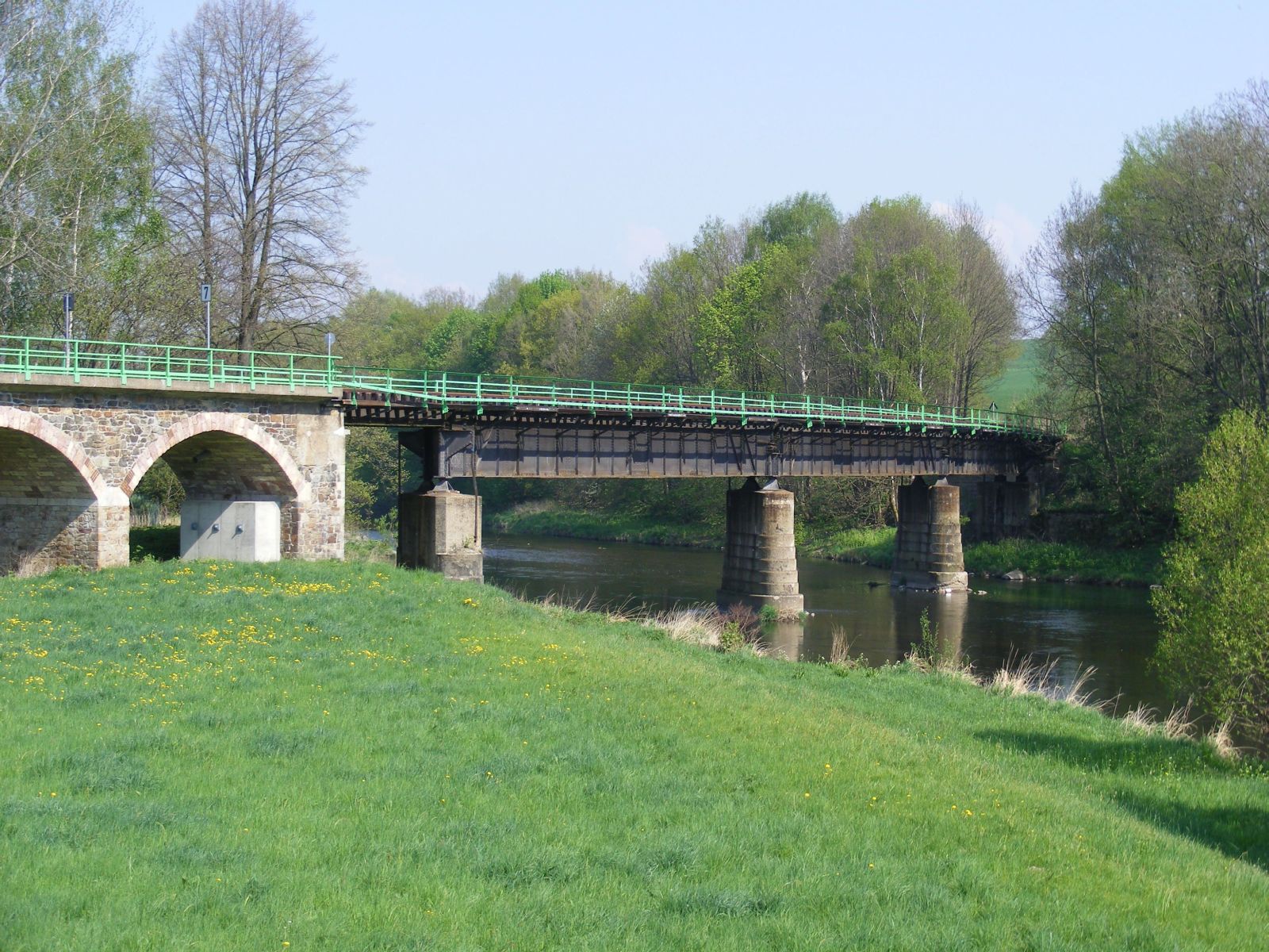 | Größeres Bild 1600 x 1200 Der Viadukt quert die Zschopau hinter dem Haltepunkt Braunsdorf-Lichtenwalde. Er setzt sich aus einer rd. 108 m langen Stahlbrücke über die Zschopau und einem rd. 255 m langen steinernen Viadukt über die rechte Flussaue zusammen. |